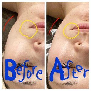 でも!ハイパーナイフフェイシャルをすると、フェイスラインもスッキリ引き締まり、キュッと上がった口角になるんです!