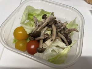 オリーブオイルできのこを炒めてバジルを振りかけたものを