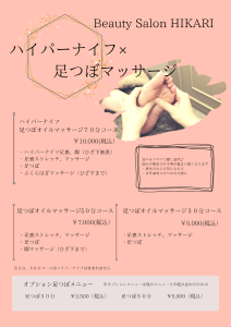 そして新たに!足つぼとハイパーナイフがセットになった新メニューと、オプションができました!