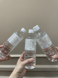 エステプロラボのファストプロウォーターです。試飲で乾杯しました(笑)