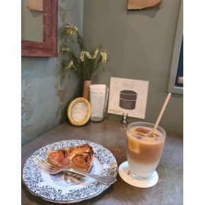 プラムのタルトとブルボンのミルクティーです\(^-^)/