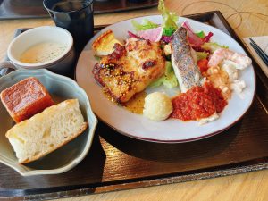プレートランチでメインやデリも選べてこのボリュームです(*´▽`*)メインが魚か肉、魚と肉があり